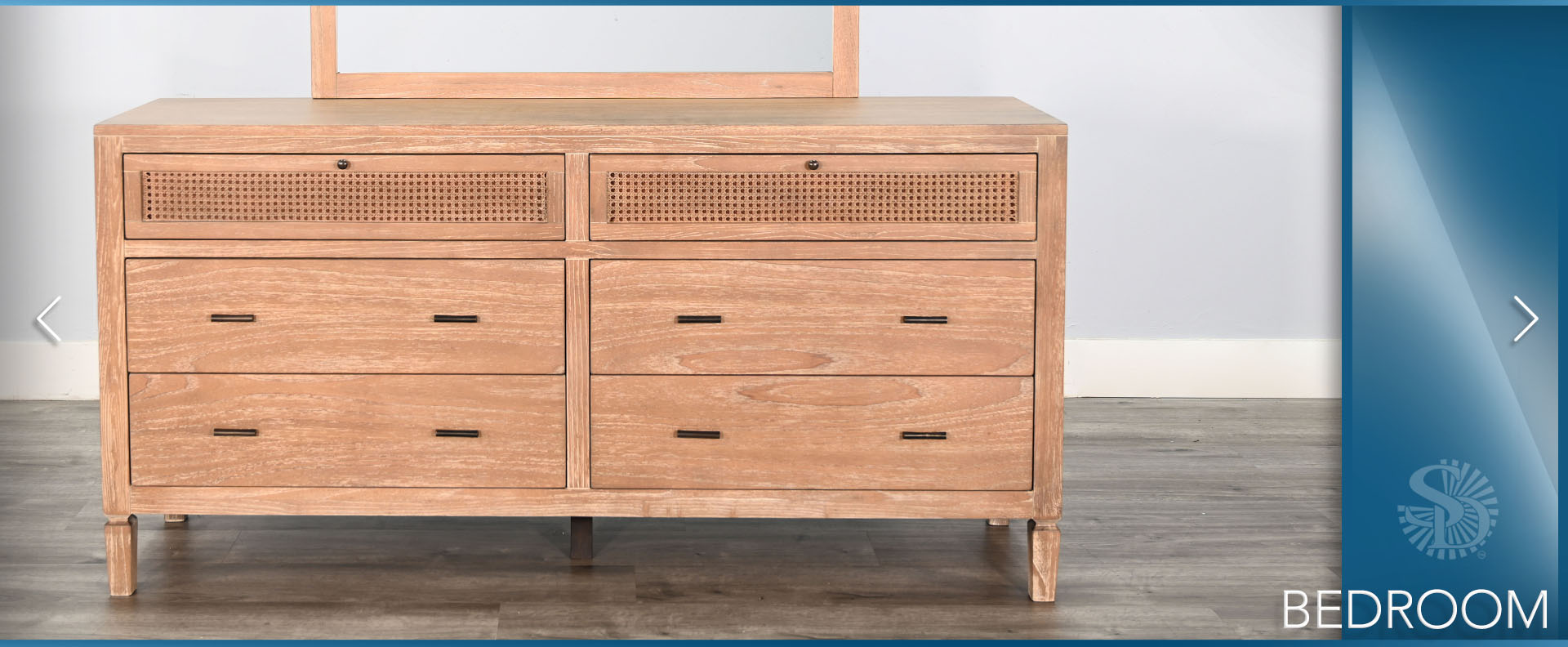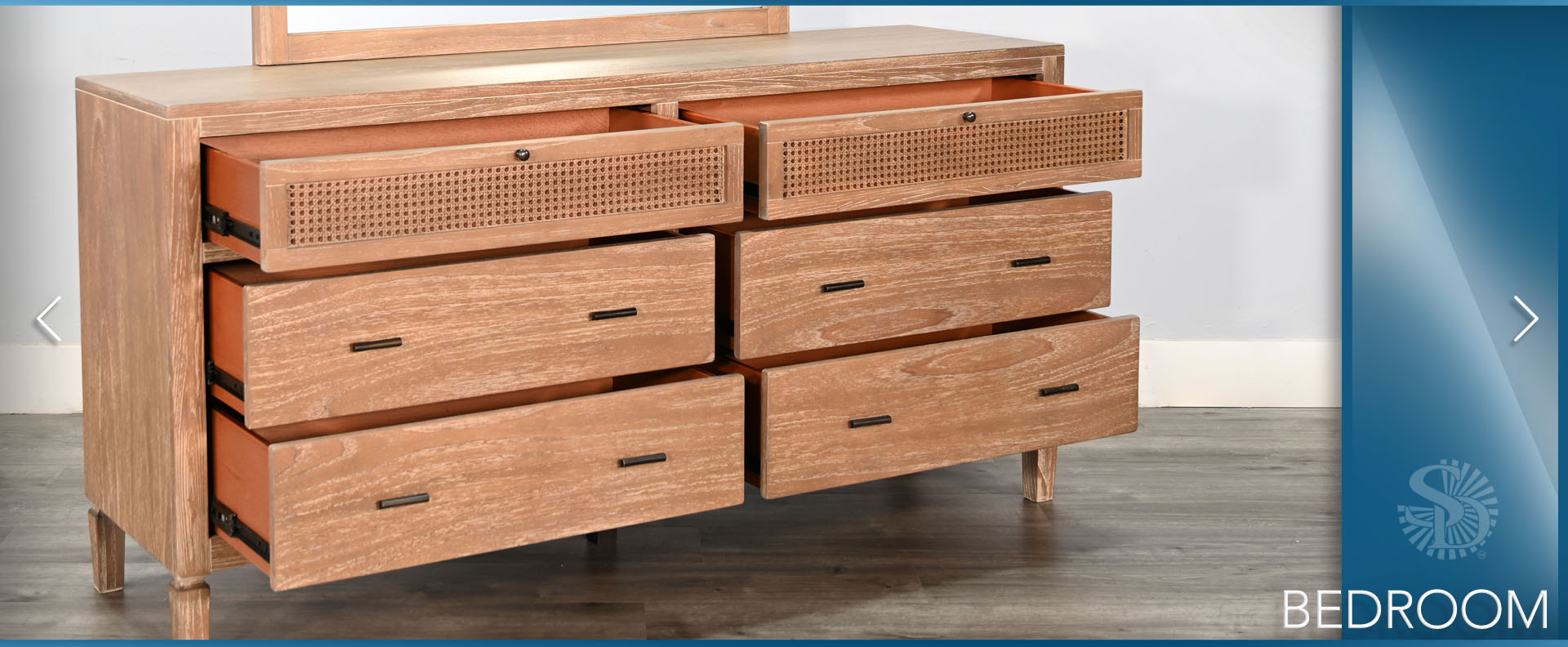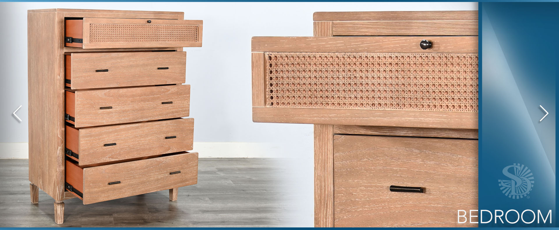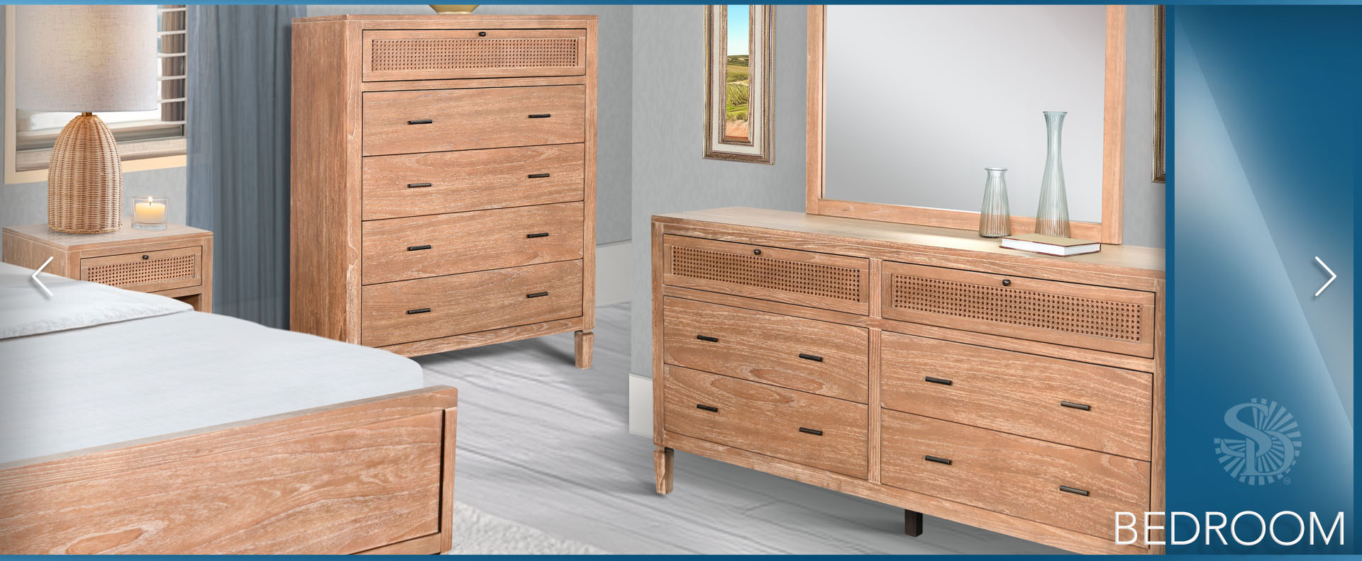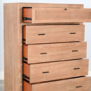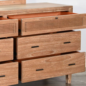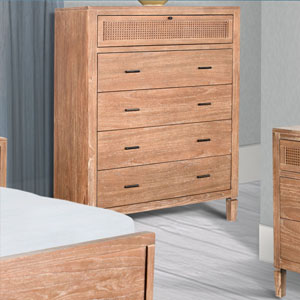 The Belinda Bedroom Set blends modern elegance with natural textures, creating a warm and inviting retreat. Crafted in Indonesia from wire-brushed Mindi solids and veneers, this beautifully designed set is available in Eastern King and Queen sizes. It includes a matching nightstand, a dresser with mirror, and a spacious chest, offering both style and functionality. With its refined craftsmanship and timeless appeal, the Belinda Bedroom Set is the perfect choice for a sophisticated and cozy bedroom.