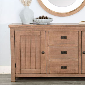 Enhance your dining or living space with this beautifully crafted buffet, designed for both style and functionality. Made from mahogany solids and veneers, this piece showcases timeless craftsmanship and durability.