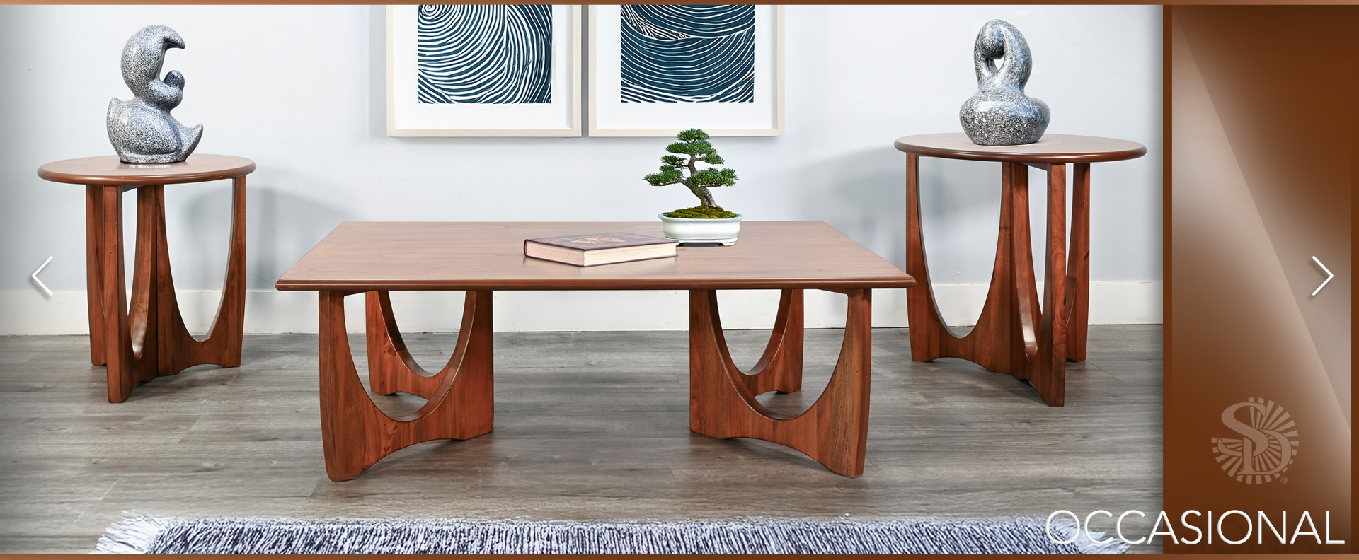 Add timeless sophistication to your living space with the Sinatra Occasional Table Set, a stunning trio of mid-century-inspired furniture. Crafted from mahogany solids and veneers, this set brings elegance and functionality to your home.