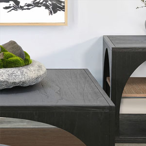 Enhance your living space with this sleek and modern Coffee Table Set, crafted from wire-brushed mindi solids and veneers. This versatile set includes two optional coffee tables with convenient casters, an end table, and a sofa table—offering both style and functionality. Finished in a striking UO combination of Umbra and Oak Grove, this collection adds warmth and sophistication to any room. Expertly made in Indonesia.