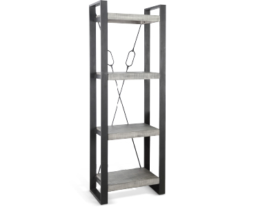 This entertainment wall is contemporary and full of features like adjustable shelves, cord management for electronics, and metal cross stretchers in the piers. In addition its constructed with mahogany solids and veneers and finished Alpine Grey.