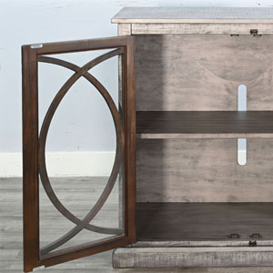 These media consoles make a superb addition to any entertainment area. Their doors feature clear glass, allowing you to
