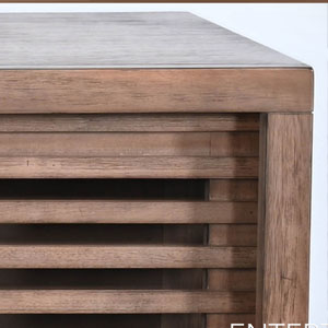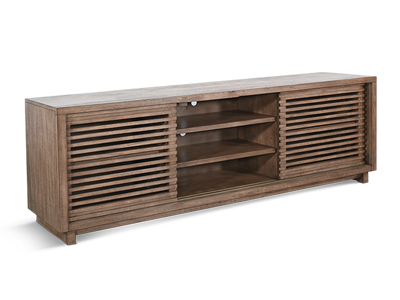 Discover our sleek media console, expertly crafted from mahogany solids and veneers. Designed for modern living,