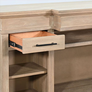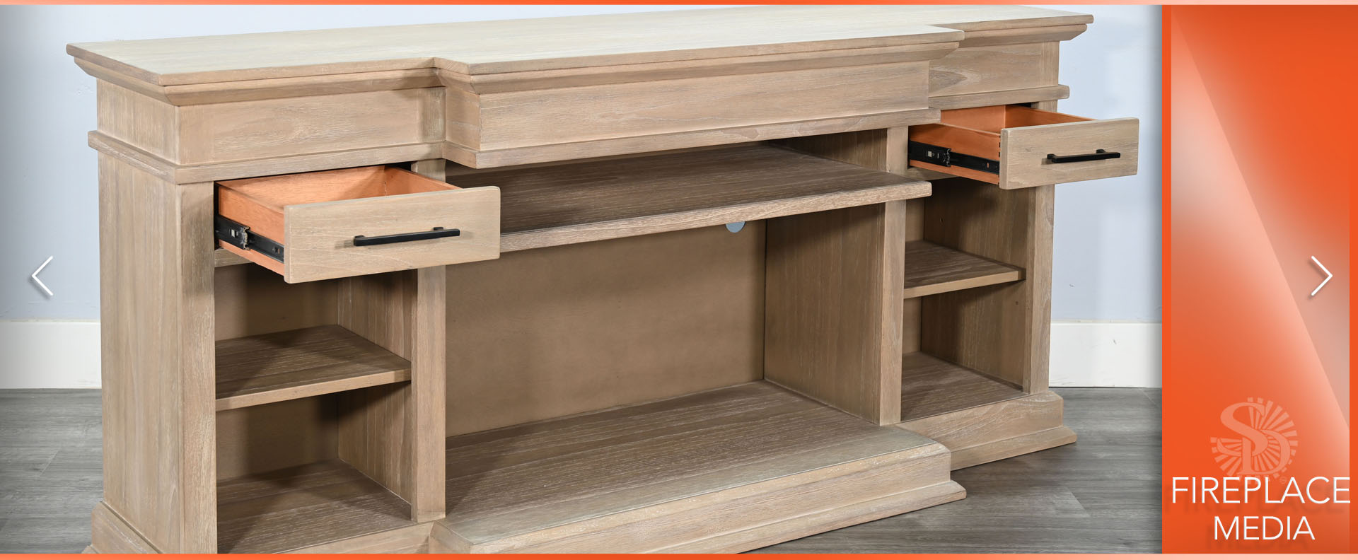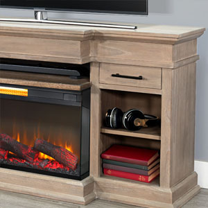 The Mason media console, complete with a fireplace insert, presents a sleek and inviting design that radiates warmth and distinctive charm, effortlessly elevating any room. Fashioned from wire brushed mahogany solids and veneers, it showcases meticulous craftsmanship and is flawlessly adorned in an enchanting wheat finish, amplifying both its allure and longevity.