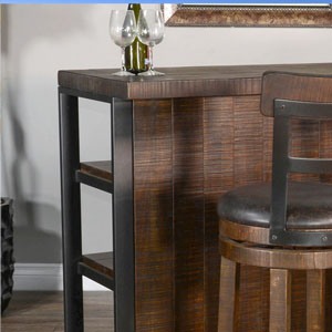 The Homestead bar is sleek and modern. The design is minimalistic with a contemporary character.It is constructed with mahogany solids and veneers, with a metal frame that is powder-coated for sturdiness.